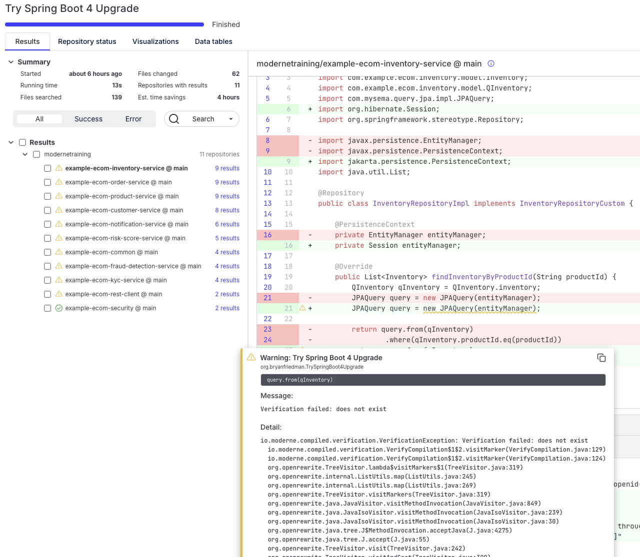 Exercise 1-2: Run the full migration recipe in the Moderne Platform