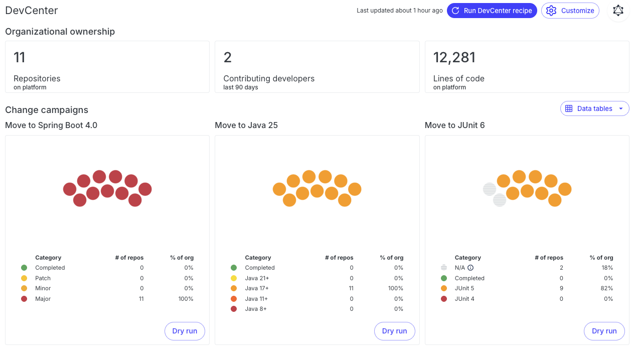 - Run the Spring Boot 4 migration recipe across an organization
