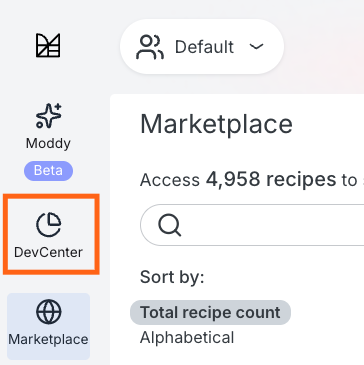 DevCenters are created for specific organizations. Not all organizations will have a DevCenter. You can check if a specific organization has a DevCenter by selecting the organization you want to use and then clicking on the DevCenter link in the left navigation bar.