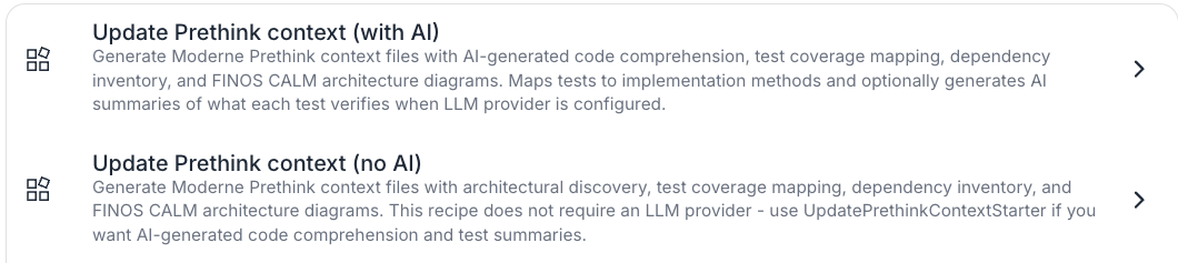 There are two key Prethink recipes in the Moderne Platform: