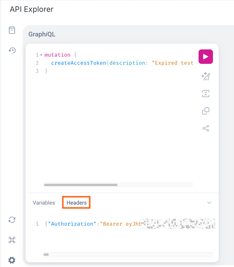 From there, at the bottom of the GraphQL Explorer, there is a request headers tag that includes this token: